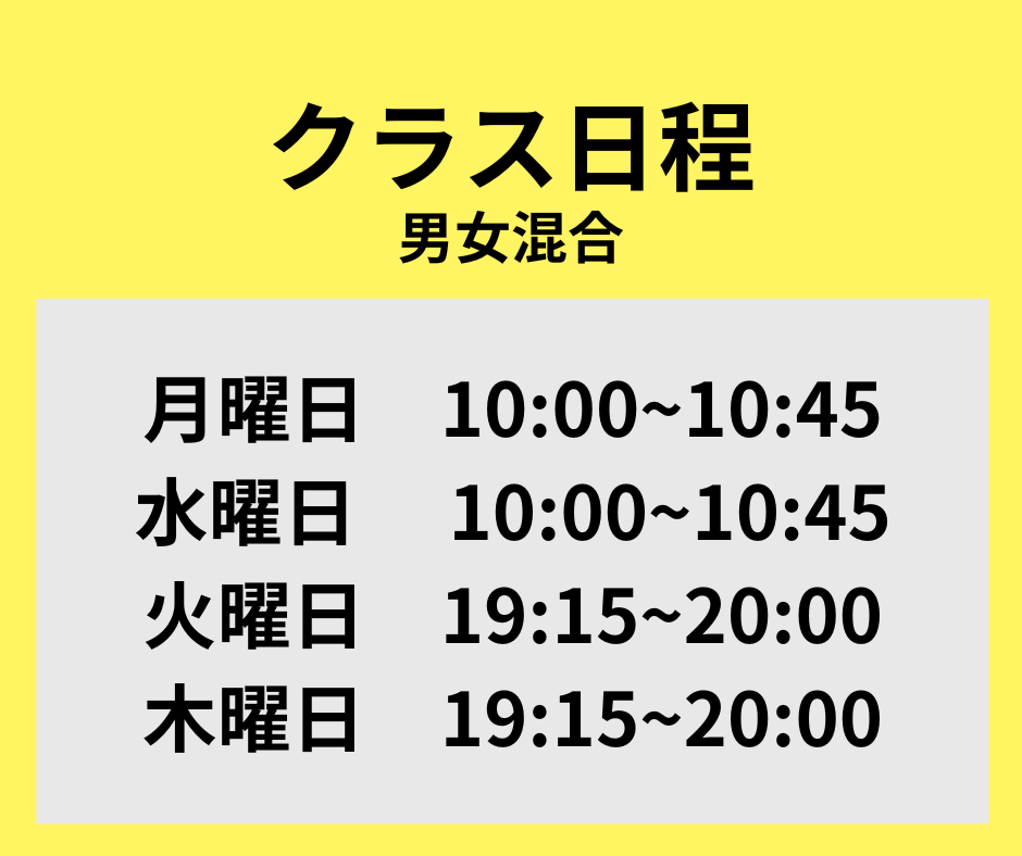 昼クラスは、ざっくり40代が多く、夜クラスは50代が多いんです。